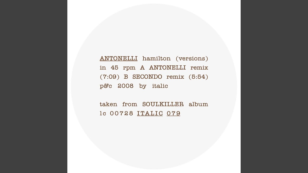 Hamilton (Secondo Remix) è stato pubblicato il 18 settembre 2008 da ITALIC recordings come parte dell'album Hamilton (Remixes) - Single